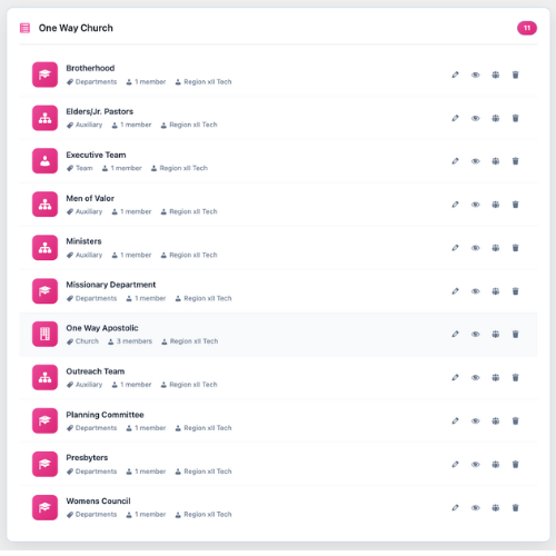 • Add a new Ministry → attach it to a Church