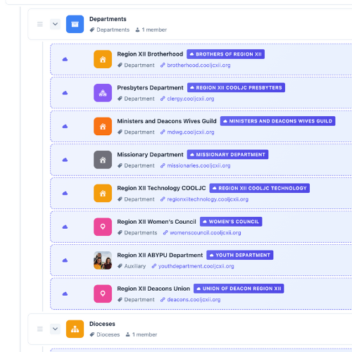 Ensures each church retains its unique character while benefiting from a shared, cohesive digital structure enhancing collaboration and clarity.